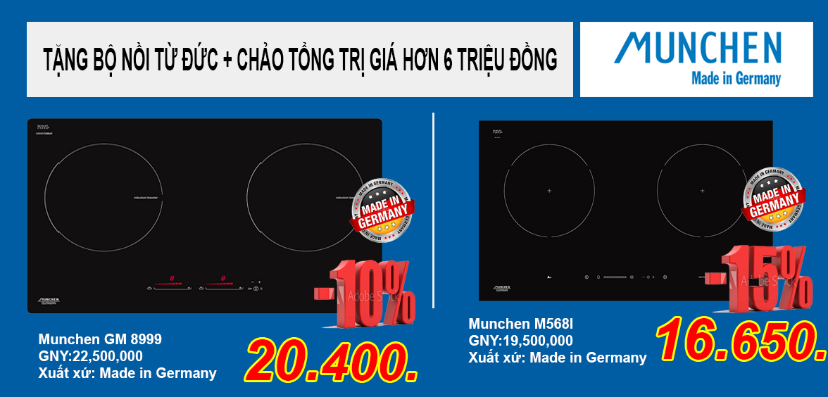 Bếp từ Munchen giảm giá 15%. Tặng bộ nồi Munchen + Chảo từ trị giá hơn 6 triệu