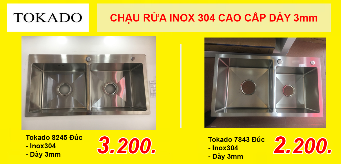 Chậu rửa bát Tokado Inox dày 3mm. Khuyến mãi tưng bừng chào mừng 30.4 & 1.5