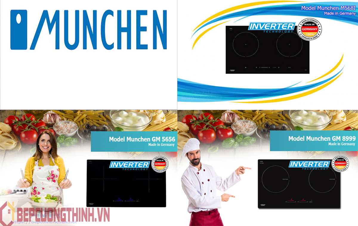 Munchen là hãng bếp từ cao cấp mang thương hiệu của Đức .Mặc dù xuất hiện trên thị trường sau các hãng nổi tiếng như : Bosch,Fagor, Cata, Siemens …nhưng chất lượng lại không thua kém các dòng này ngược lại bếp từ Munchen đang ngày càng khẳng định được ưu thế của mình bởi đây là hãng đầu tiên tích hợp được công nghệ Inverter ,siêu tiết kiệm điện năng vào tất cả các sản phẩm bếp từ ,điện từ.Bếp từ Munchen nhập khẩu nguyên chiếc từ Đức gồm có GM8999,GM5656 và M568i