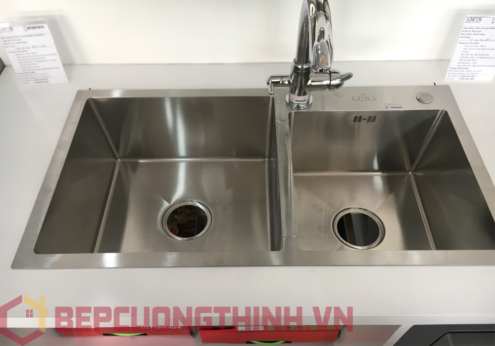 Nằm trong phân khúc chậu rửa bát giá rẻ không thể không nhắc đến chậu Luna 7843 đúc đây là mẫu chậu đứng đầu trong top chậu rửa bát bán chạy nhất tại Bếp Cường Thịnh trong thời gian vừa qua ,không chỉ bởi giá cả hợp lí mà mẫu chậu rửa này còn ghi điểm với các nhà nội trợ bởi sử dụng chất liệu inox 304 cao cấp siêu bền được đúc liền khối vô cùng tinh sảo và sắc nét,độ dày inox lên đến 2,5mm ,có thêm sơn tĩnh điện chống ồn hiệu quả gấp 5 lần so với những mẫu chậu rửa bát thường khác