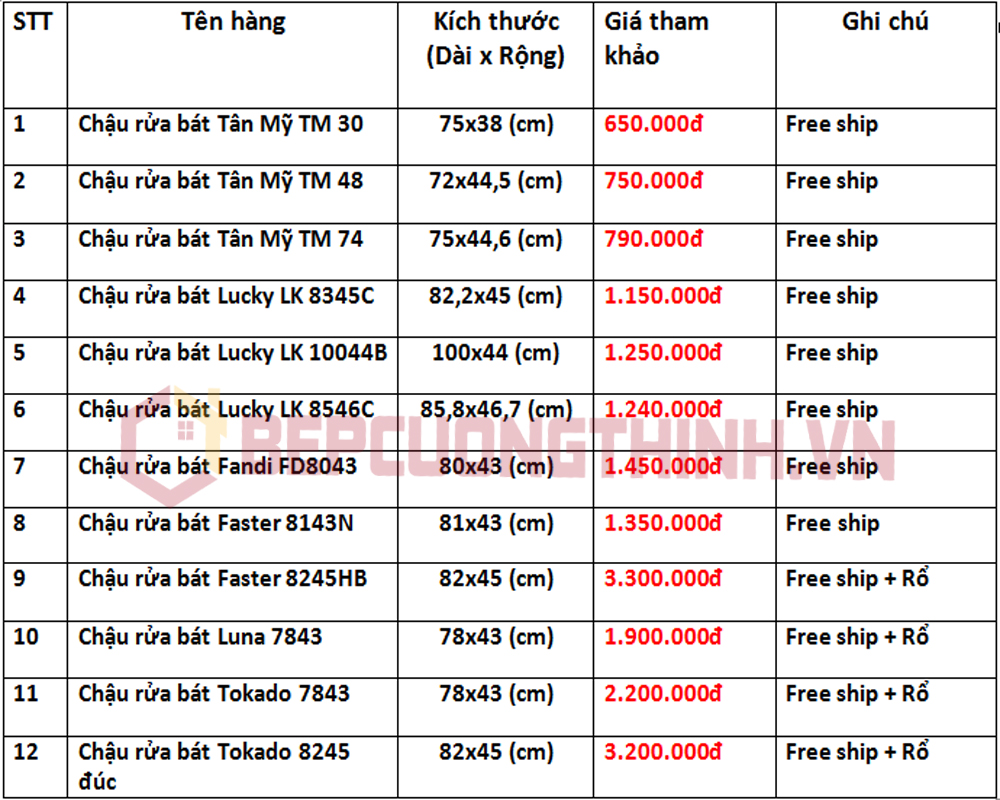 Bếp Cường Thịnh xin gửi tới quý khách hàng đang có nhu cầu mua chậu rửa bát những mẫu chậu rửa bát 2 hố giá rẻ và bảng báo giá mới nhất để quý khách hàng tham khảo